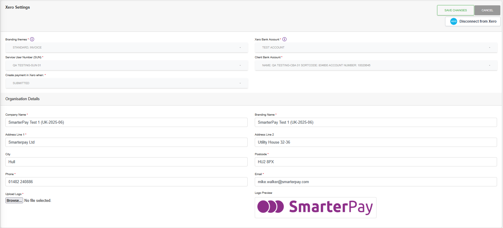 Branding Themes | Yes | Multi-Select | The invoice branding themes, in Xero, that will use Smarterpay as a payment service. |